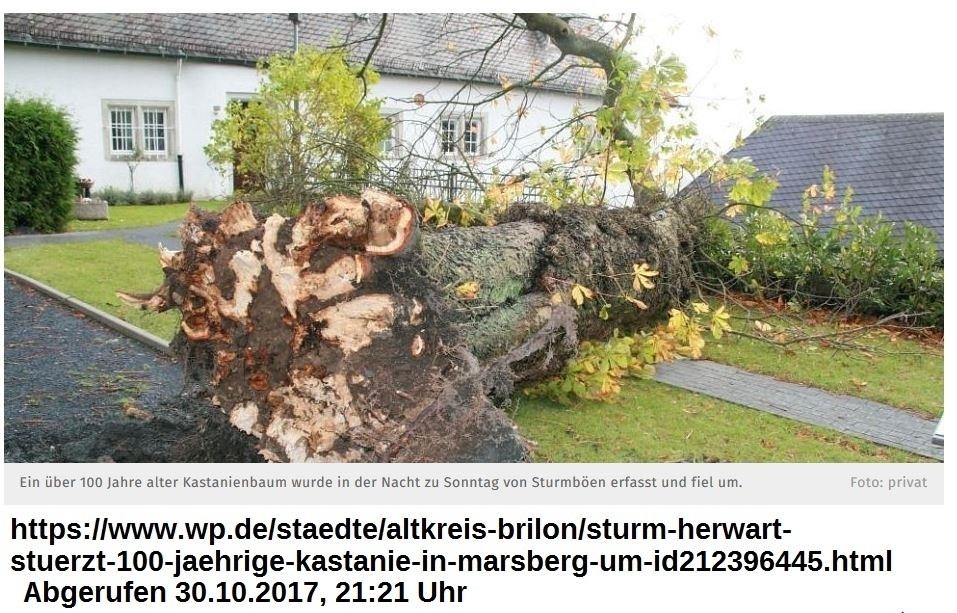 Hilfeleistung 0Sturm: umgestürzter Baum; Windbruch; lose Dachziegel; umgestürzte Schilder