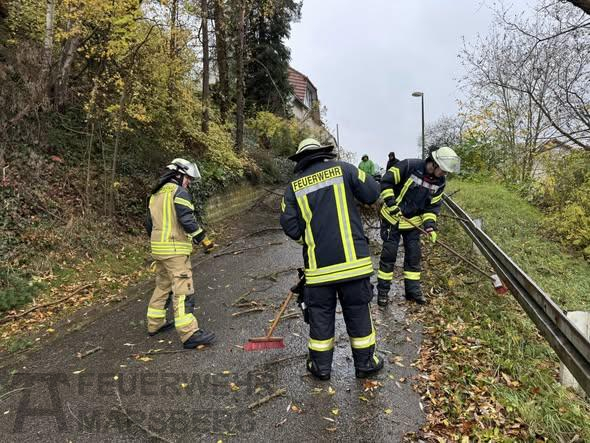 Gegen 9.15 mussten die Wehrleute erneut ausrücken; diesmal musste in der Kernstadt ein umgestürzter Baum beseitigt werden.