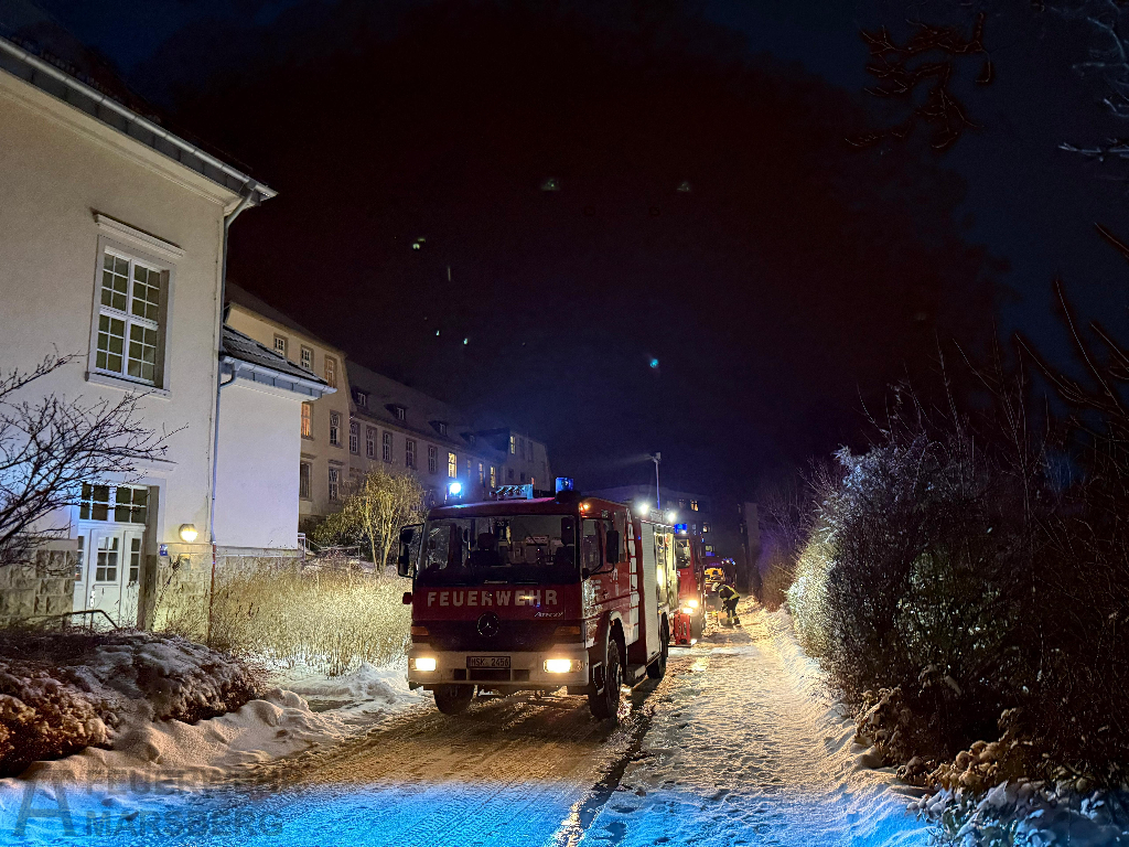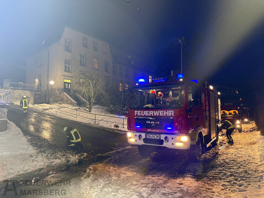Marsberg: Brandeinsatz auf Klinikgelände: Mit einem Feuer in einem Patientenzimmer waren fast 60 Einsatzkräfte der Feuerwehr Marsberg in der Nacht zum 4.2.2026 konfrontiert. Glücklicherweise kam niemand zu Schaden: Das Pflegepersonal hatte die betroffene Station bereits vollständig evakuiert, als die Feuerwehr eintraf.