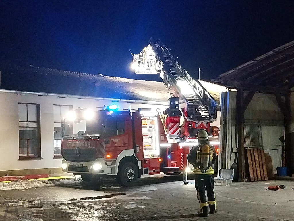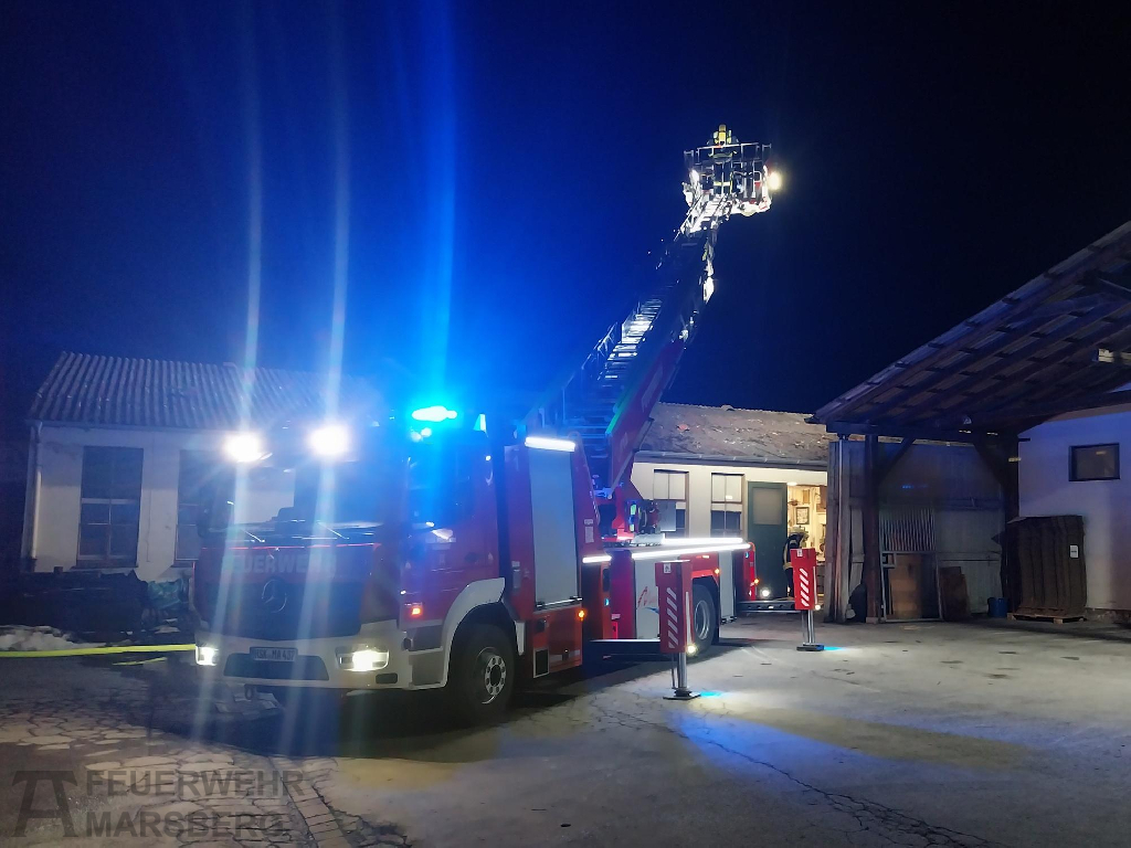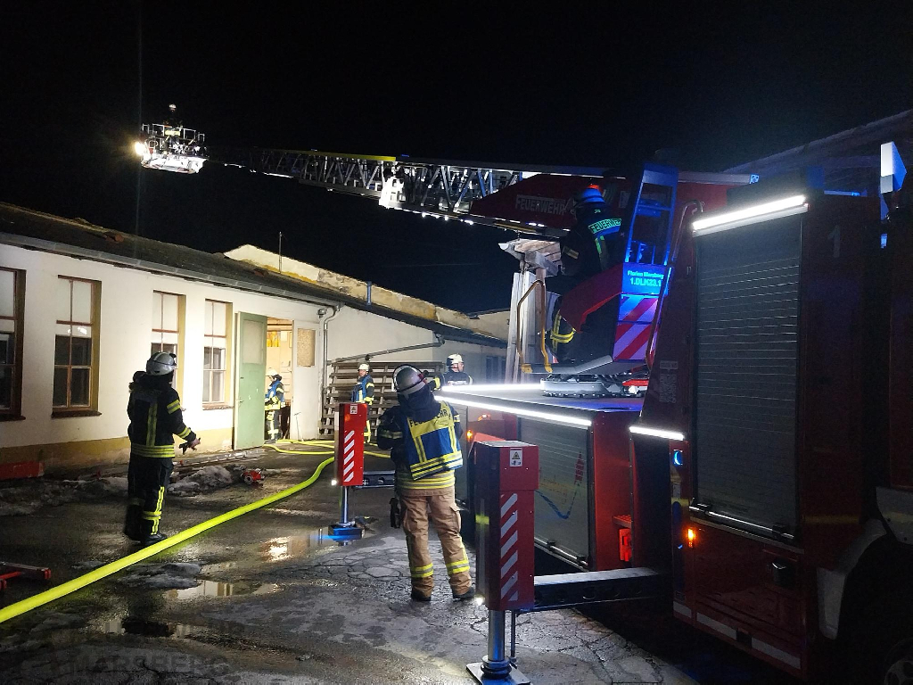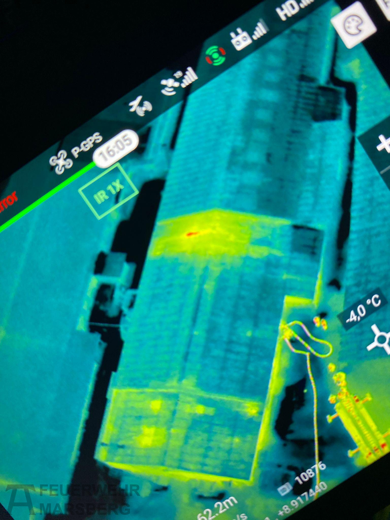 Der Alarm ging gegen 20.50 bei der Feuerwehr ein, die Einsatzstelle befand sich in Westheim auf einem Firmengelände. Die Eigentümer hatten Rauchentwicklung bemerkt. Die Feuerwehr brachte die Drehleiter in Stellung und bereitete einen Löschangriff unter Atemschutz vor. Die genaue Erkundung ergab, dass es sich um einem Schwelbrand in der Zwischendecke eines Werkstattgebäudes handelte. Dank des Einsatzes der Drohne konnte die genaue Brandstelle schnell lokalisiert werden.
