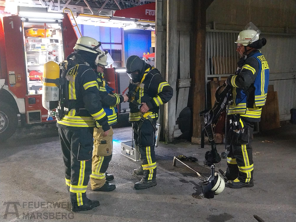 Nach etwa zwei Stunden konnte schließlich „Feuer aus“ gemeldet werden, so dass die Feuerwehr den Löschangriff wieder zurückbauen konnte. Die sechs Einsatzkräfte, die unter Atemschutz vorgingen, durchliefen die notwendige Einsatzstellenhygiene. Knapp 50 Einsatzkräfte aus Westheim, Oesdorf, Essentho, Meerhof und Marsberg sowie der Fachgruppe Drohne waren unter der Leitung des stv. Wehrleiters Michael Hüwel vor Ort. Aus dem Zentrum für Feuerschutz und Rettungswesen rückte ein Sonderfahrzeug für den Tausch von Atemschutzgeräten und Einsatzkleidung an, ebenso der Energieversorger.