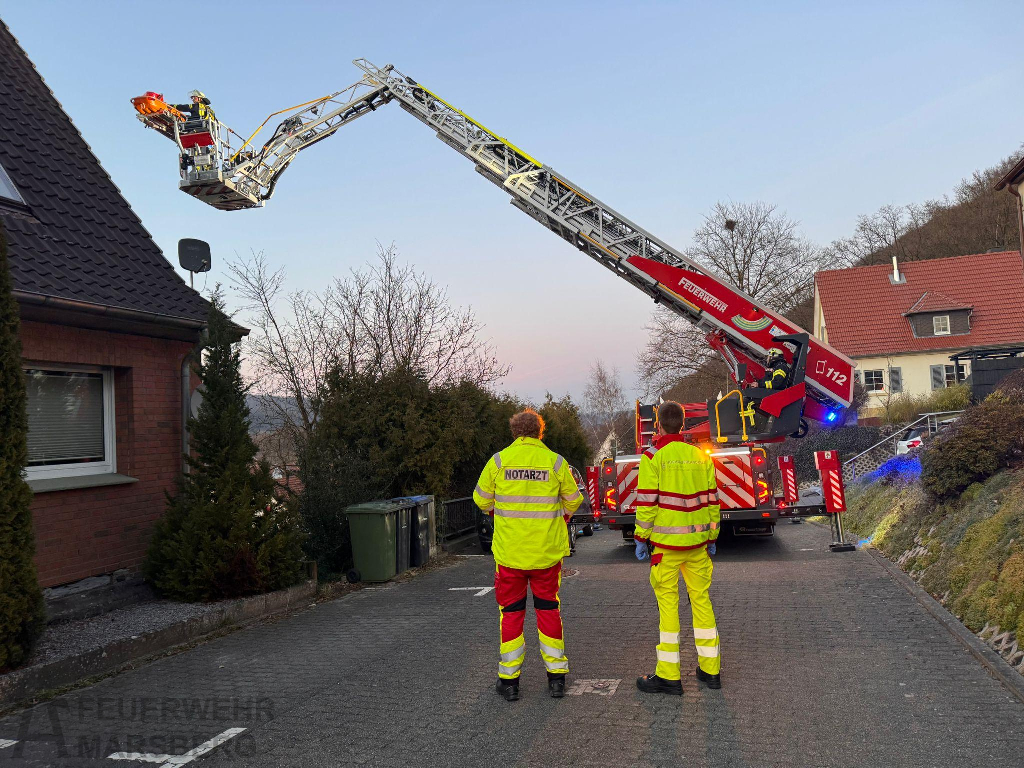 Marsberg: Zu einer Unterstützung des Rettungsdienstes wurde am späten Nachmittag des 18.3.2026 die Drehleiter des Löschzugs Marsberg alarmiert. Der Rettungsdienst hatte die Drehleiter angefordert, um einen Patienten sicher aus dem 1. Obergeschoss eines Wohnhauses zu retten. Er war bereits medizinisch versorgt wurde nach erfolgtem Transport über die Drehleiter dem Rettungsdienst übergeben.