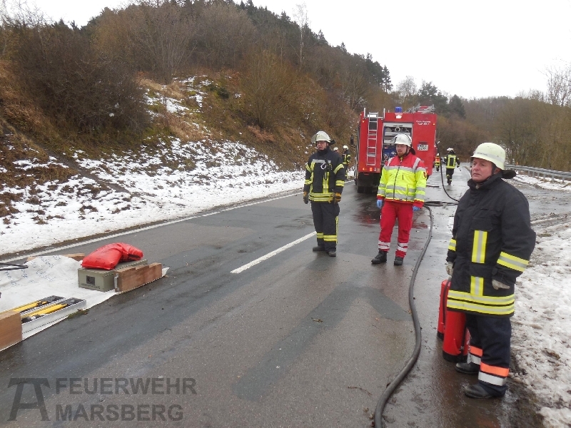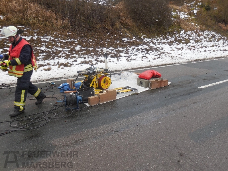 Die Landstraße war für die Dauer des Einsatze etwa anderthalb Stunden gesperrt. Neben Einsatzkräften von Polizei und Rettungsdienst waren insgesamt 25 Einsatzkräfte der Feuerwehr mit vier Fahrzeugen im Einsatz.
