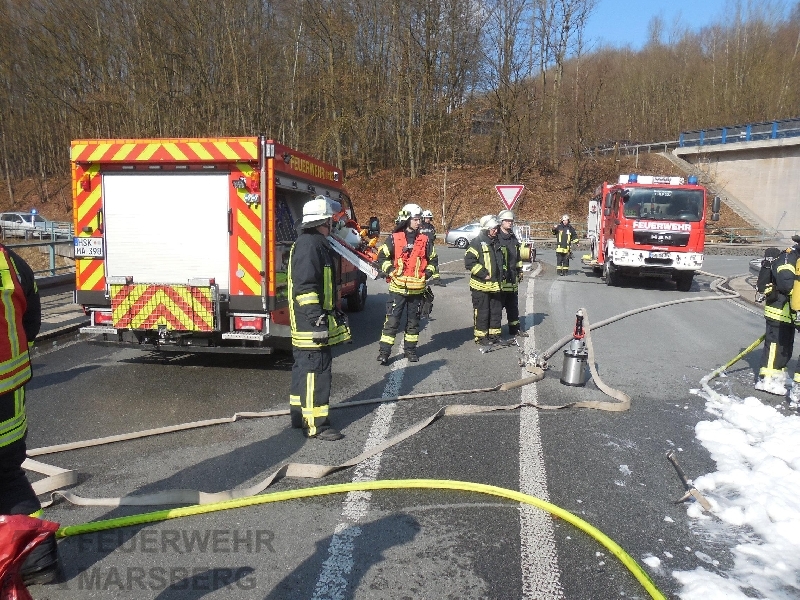 Die zur Einsatzstelle alarmierten Löschgruppen aus Westheim und Oesdorf nahmen an der Einsatzstelle die Brandbekämpfung vor und sicherten die Einsatzstelle bis zum Eintreffen der Polizei. Während des Einsatzes musste die Autobahnauffahrt sowie die Ausfahrt Marsberg gesperrt werden. Der Löschzug Marsberg rückte mit dem HLF20 an und stellte eine ausreichende Wasserversorgung sicher.