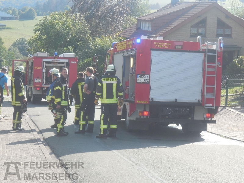 Padberg: Zu einem Brandeinsatz wurden am Nachmittag des 23.8.2019 gegen 16.40 Uhr die Feuerwehren aus dem Brandschutbezirk Südwest und der Löschzug Marsberg alarmiert. Unter der Alarmmeldung „Feuer in Wohnhaus“ rückten die Einsatzkräfte aus Padberg, Bredelar, Beringhausen, Helminghausen und Marsberg in den Marsberg Ortsteil Padberg aus.