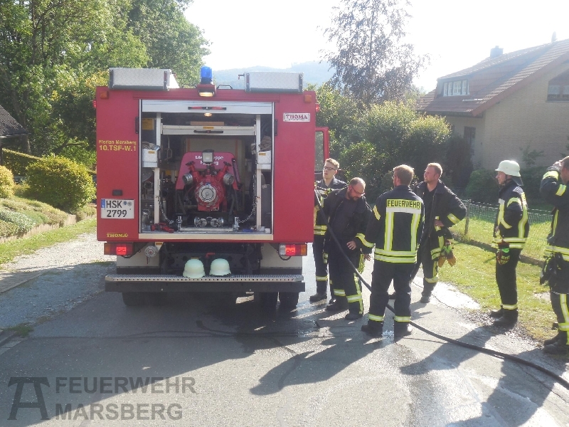 Doch der gemeldete Wohnhausbrand entpuppte sich lediglich als Brand einer kleinen Hecke vor einem Haus. Die Vornahme des Schnellangriffs durch die Löschgruppe Padberg reichte aus, um den Brand binnen kürzester Zeit zu löschen. Nach etwa 20 Minuten war der Einsatz bereits beendet. An der Einsatzstelle wurden etwa 20 Einsatzkräfte unter der Leitung von Matthias Uthoff aus Padberg tätig, nicht mitgezählt sind die Einsatzkräfte, die sich infolge der Alarmierung noch auf der Anfahrt befanden.