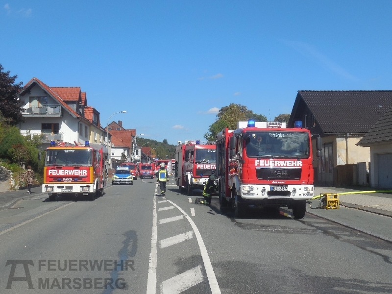 Da noch unklar war, ob sich noch weitere Bewohner in dem Gebäude befinden, wurde ein Großaufgebot an Rettungskräften alarmiert: Neben dem Löschzug Marsberg auch die Löschgruppen Obermarsberg, Erlinghausen, Westheim und Essentho. Ebenso rückte der Rettungsdienst aus Marsberg, Brilon und Bad Wünnenberg zur Einsatzstelle an. Später wurde auch das DRK Brilon zur Eigensicherung der Feuerwehr angefordert.