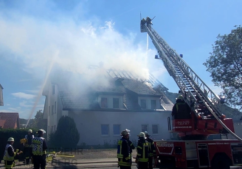 Marsberg: Ein Großbrand in einem Mehrfamilienhaus hat am frühen Nachmittag des 4.9.2019 zahlreiche Einsatzkräfte der Feuerwehr Marsberg gefordert. Verletzt wurde bei dem Brand glücklicherweise niemand, allerdings ist das Haus nicht mehr bewohnbar.