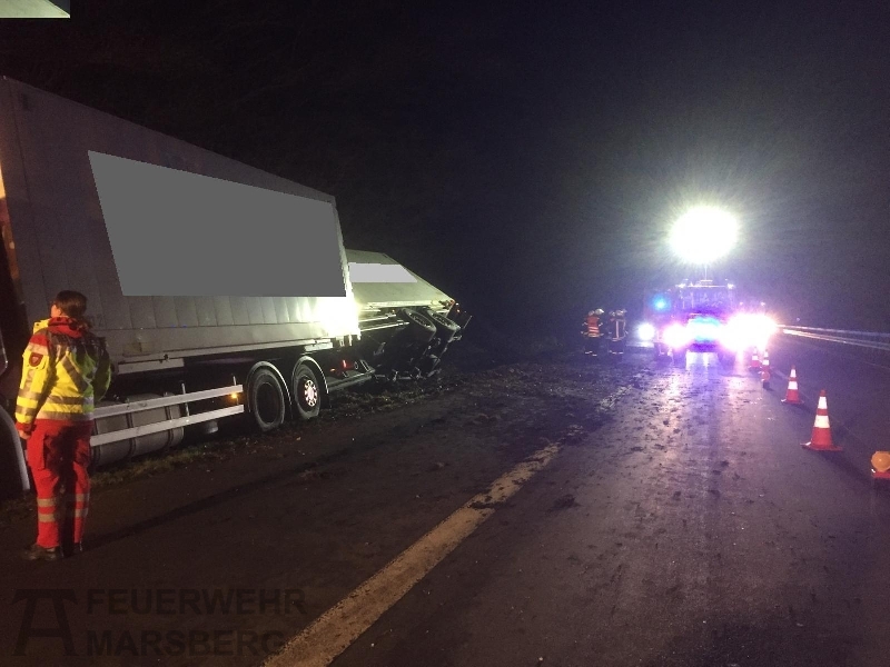 Vor Ort waren insgesamt 32 Einsatzkräfte der Feuerwehr, die Autobahnpolizei, ein Rettungwagen aus Lichtenau sowie der Notarzt aus Marsberg sowie das angeforderte Abschleppunternehmen mit zwei Fahrzeugen.