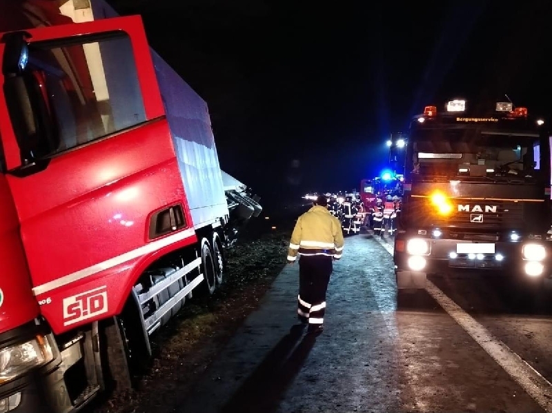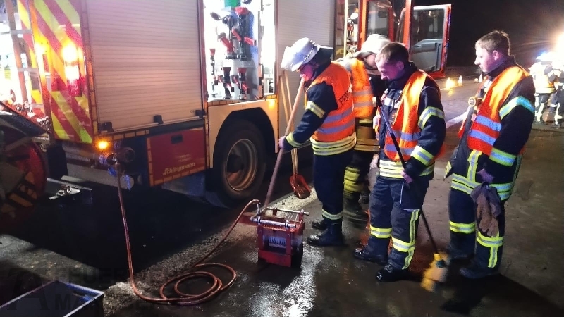 Die alarmierten Einsatzkräfte der Feuerwehr sicherten die Einsatzstelle mit Absperrmaterial soweit ab, dass der Verkehr einspurig weiterlaufen konnte. Ferner stellten sie den Brandschutz sicher und leuchteten die Einsatzstelle weiträumig aus. Bis zum Eintreffen des Rettungsdienstes wurde der Fahrer von der Feuerwehr betreut und erstversorgt. Durch den Rettungsdienst wurde der Fahrer daraufhin in ein Krankenhaus gebracht. Ebenso wurde die Fahrbahn von Trümmern und Erdreich gereinigt.