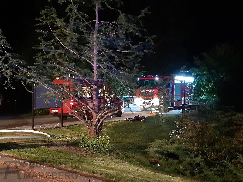 Marsberg: Zu einem Brandeinsatz wurden in der Nacht zum Freitag, den 15.5.2020, mehrere Feuerwehren aus dem Stadtgebiet Marsberg alarmiert. Auf einem Klinikgelände waren Abfallbehälter in Brand geraten. Personen kamen nicht zu Schaden. Da das Feuer umfangreiche Lüftungsmaßnahmen nach sich zog, dauerte der Einsatz für die etwa 40 Einsatzkräfte mehrere Stunden.