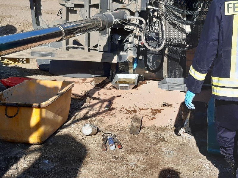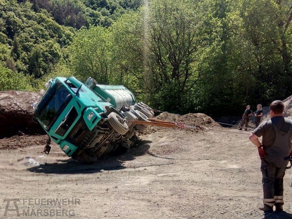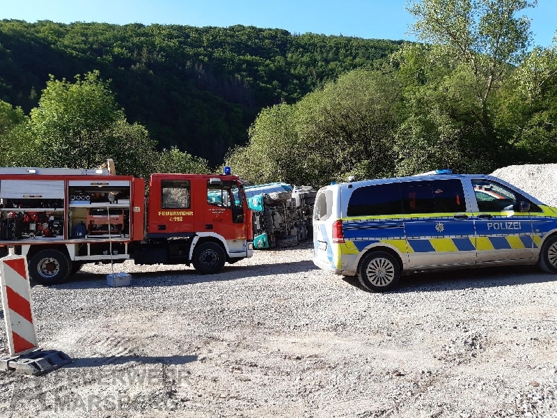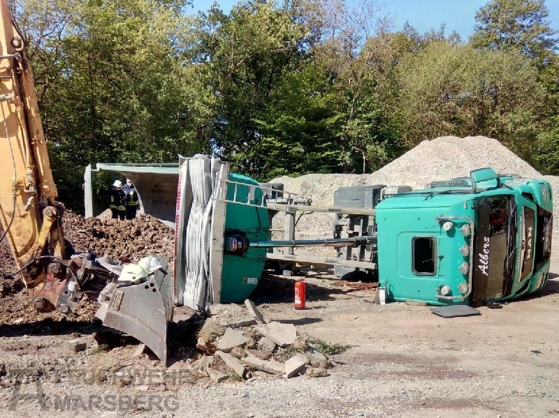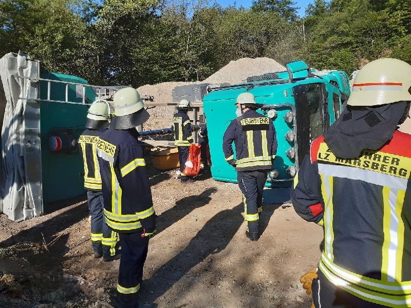 Gegen 8.00 wurden der Rettungsdienst sowie die Feuerwehren aus Padberg, Bredelar, Beringhausen, Helminghausen und Marsberg alarmiert, die Meldung lautete „Verkehrsunfall mit einer eingeklemmten Person“. Auf dem Weg zur Einsatzstelle wurden die Einsatzkräfte von Ersthelfern zu einer Bauschuttdeponie eingewiesen, wo sie auf einen umgestürzten, auf der Seite liegenden LKW trafen.