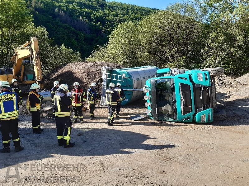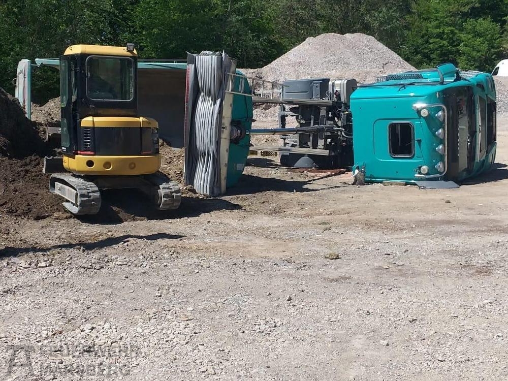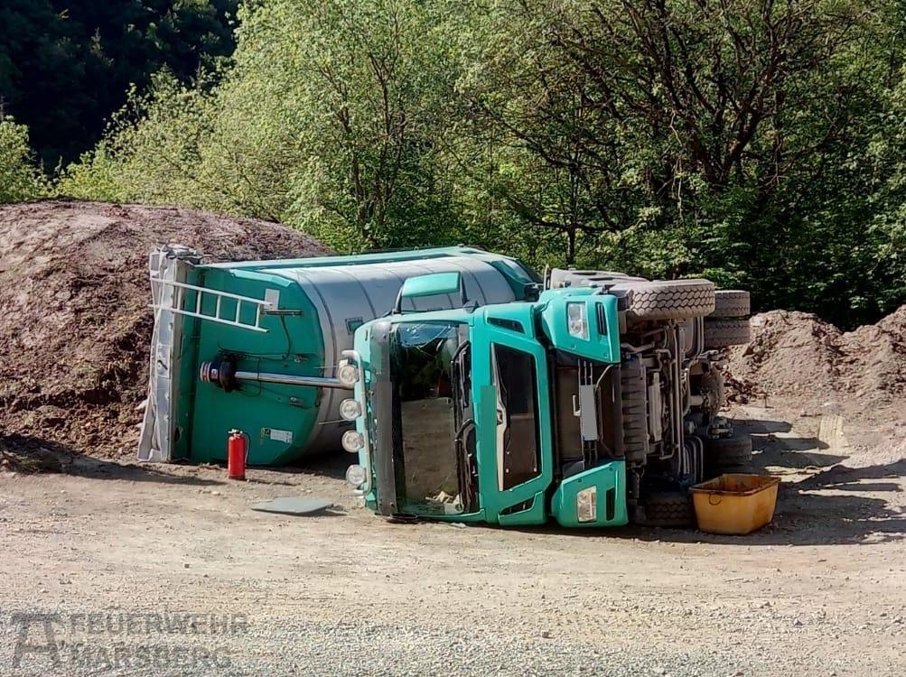 Padberg: Ein schwerer Unfall ereignete sich am Morgen des 29.5.2020 auf einer Boden- und Bauschuttdeponie im Marsberger Ortsteil Padberg: Dort stürzte ein LKW beim Abladevorgang auf die Seite, wobei sich der Fahrer Verletzungen zuzog. Einsatzkräfte von Rettungsdienst und Feuerwehr waren knappe zwei Stunden im Einsatz.