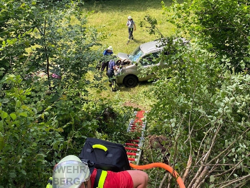Auffahrunfall: PKW stürzt Böschung hinunter und überschlägt sich