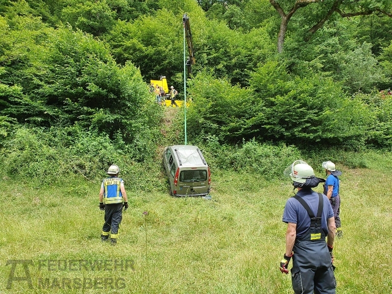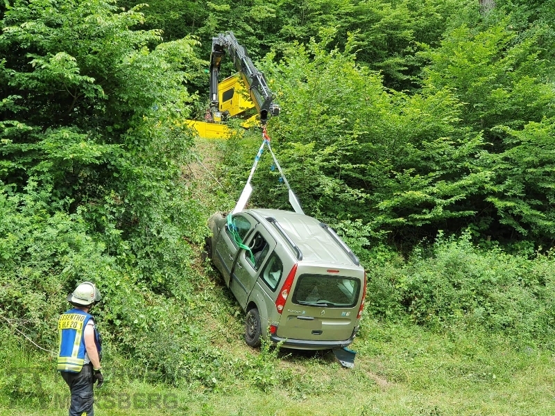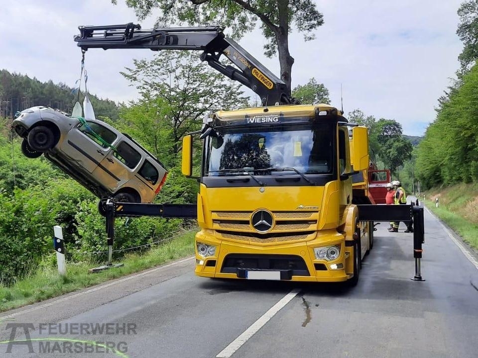 Während die Rettung der verunfallten Personen zügig vonstatten ging, gestaltete sich die Bergung des PKW von der Wiese aus als sehr aufwändig. Der zuerst eingetroffene Abschleppdienst konnte das Fahrzeug nicht gefahrlos von der Wiese über die Böschung bergen, weshalb ein zweites Abschleppunternehmen nachgefordert wurde. Nach erfolgter Bergung und Reinigung der Fahrbahn konnte die Feuerwehr nach etwa drei Stunden den Einsatz beenden.