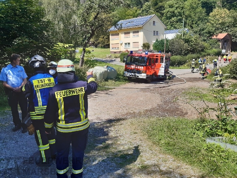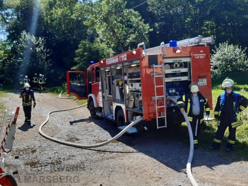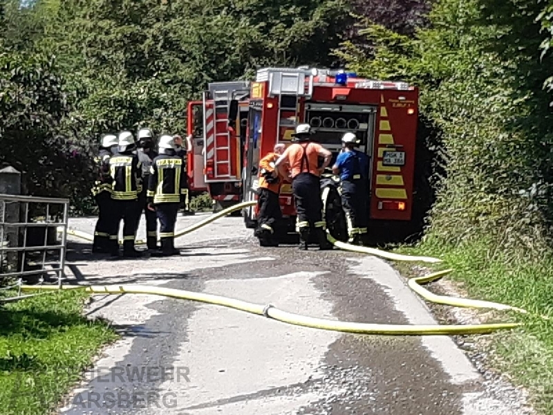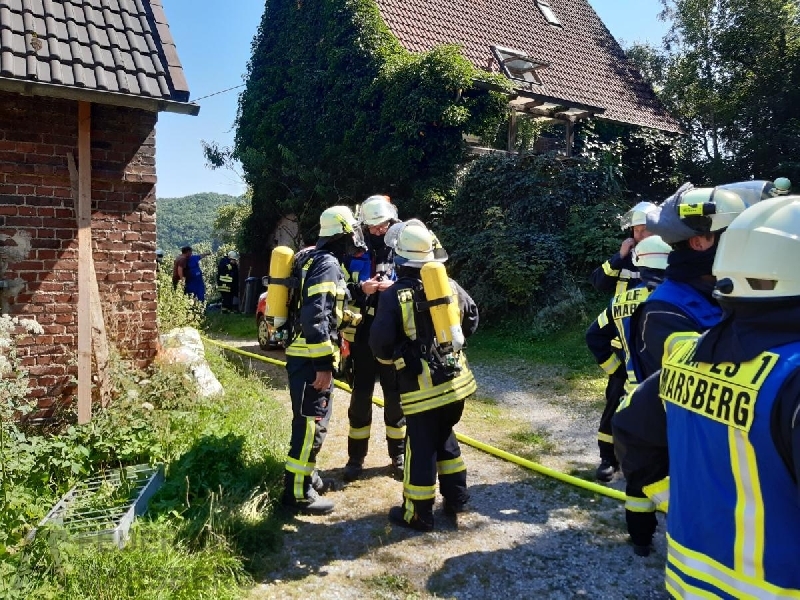 Marsberg: Großeinsatz für mehrere Feuerwehren aus dem Marsberger Stadtgebiet: Am frühen Nachmittag des 7.8.2020 wurden der Löschzug Marsberg sowie die Löschgruppen aus Obermarsberg, Erlinghausen und Westheim zu einem Brandeinsatz alarmiert: Gemeldet war ein Kellerbrand in einem Wohnhaus mit Menschenleben in Gefahr. Die Einsatzstelle befand sich in einer kleinen Siedlung außerhalb, zwischen Marsberg und Westheim.
