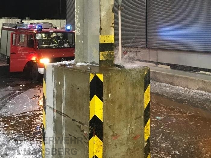 Beschädigte Sprinkleranlage im Außenbereich eines Industriebetriebs ursächlich für den Alarm; vermutlich ausgelöst durch Frostschaden. Kein Schadenfeuer.