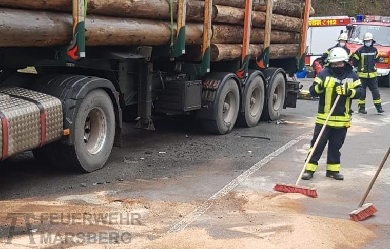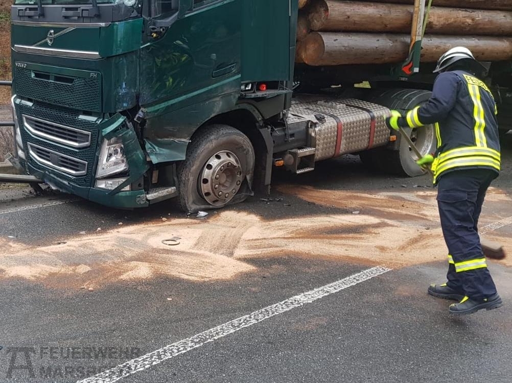 Um 9:19 Uhr wurden die Löschgruppen Beringhausen und Bredelar auf die B7 in Richtung Madfeld alarmiert, um nach einem Verkehrsunfall mit zwei LKW auslaufende Betriebsmittel aufzunehmen.