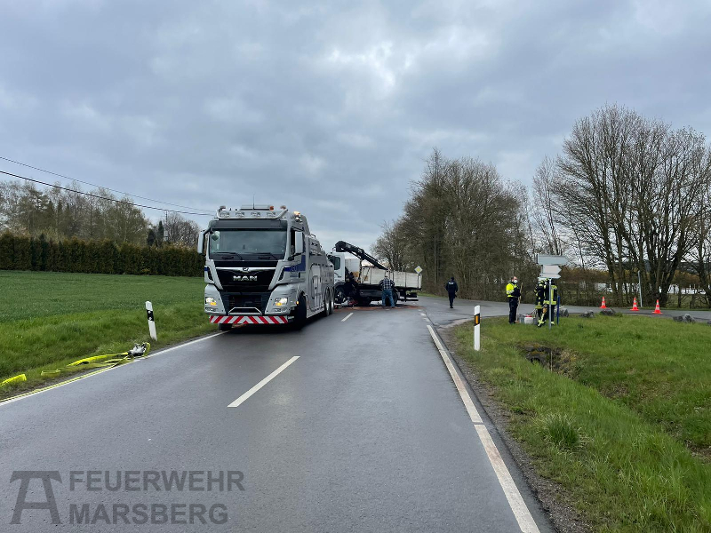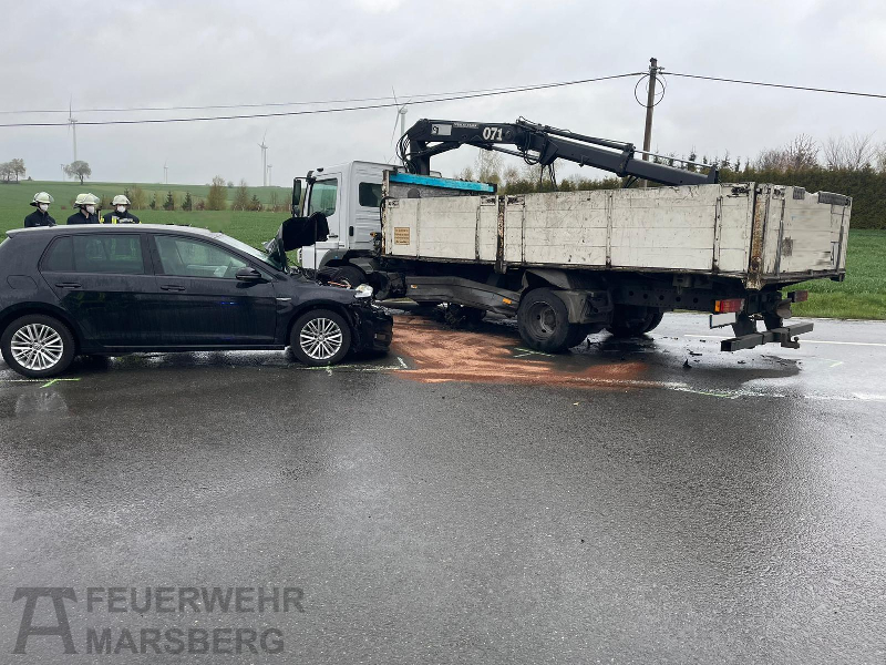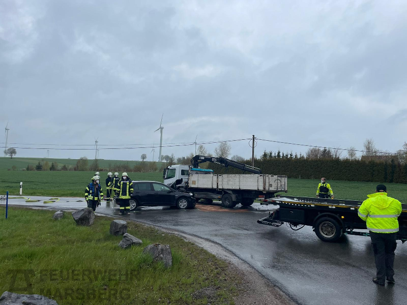Zu einem Verkehrsunfall mit einer schwer verletzten Person rückte am Morgen des 6.5.2021 die Löschgruppe Essentho aus: An der Straßenkreuzung "An der Wallme" Ecke "Fürstenberger Straße" stießen ein LKW und ein PKW zusammen, in dessen Folge wurde die Fahrerin des PKW schwer verletzt, wie die Polizei mitteilte.