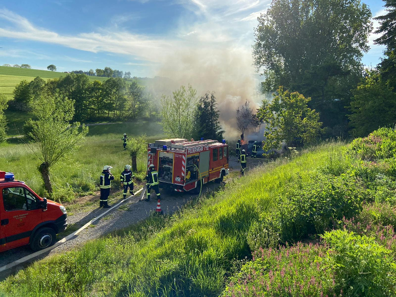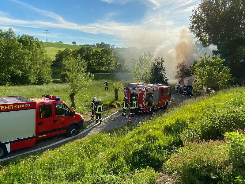 Zu einem Brandeinsatz ohne Menschenleben in Gefahr wurden am Abend des 1.6.2021 die Feuerwehren aus Westheim, Meerhof, Oesdorf und Marsberg alarmiert: Gemeldet wurde ein Brand von Strohballen in einer Scheune zwischen Westheim und Helmighausen. Zwar lag die Einsatzstelle schon auf hessischer Seite, aufgrund des Notrufs war aber Alarm für die Marsberger Wehren gegeben worden.