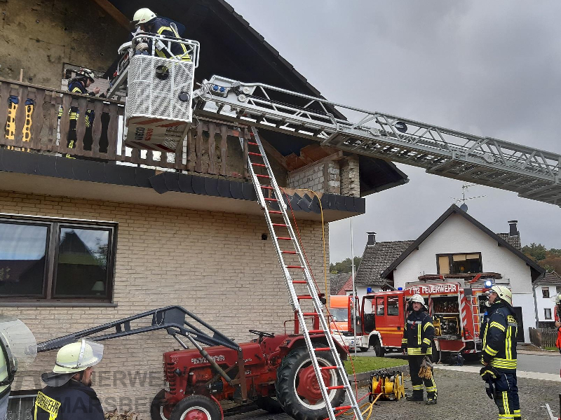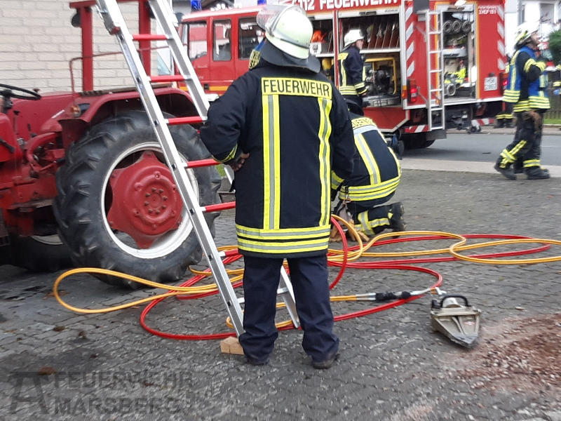Westheim: Zu einem Hilfeleistungseinsatz mit einer eingeklemmten Person wurden am Nachmittag des 11.10.2021 die Feuerwehren aus Westheim, Oesdorf, Essentho und Meerhof sowie Marasberg alarmiert: Bei Abbrucharbeiten in einem Haus stürzte eine Wand ein, ein Mann wurde dabei von einem ca. 300kg schweren Sturz eingeklemmt. Er wurde schwer, aber nicht lebensbedrohlich verletzt. Nach einer knappen halben Stunde hatte die Feuerwehr ihn aus seiner Zwangslage befreit.