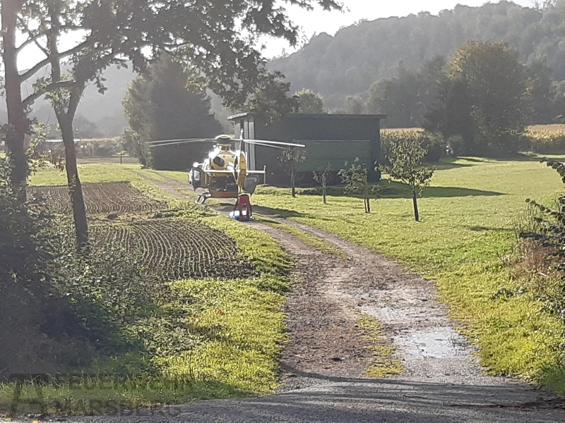 Da von einer schweren Verletzung auszugehen war, wurde der Rettungshubschrauber Christoph 8 angefordert. Im Rettungswagen wurde der Patient weiter versorgt und schließlich zum Rettungshubschrauber gebracht, der Nahe der Einsatzstelle auf einer Wiese landen konnte. Aufgrund des Verletzungsmusters wurde er in eine Spezialklinik geflogen. Lebensgefahr bestand aber nicht.
