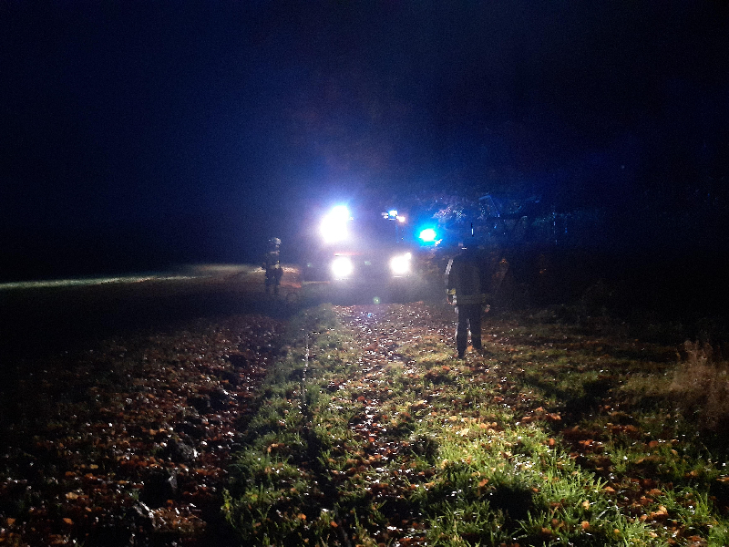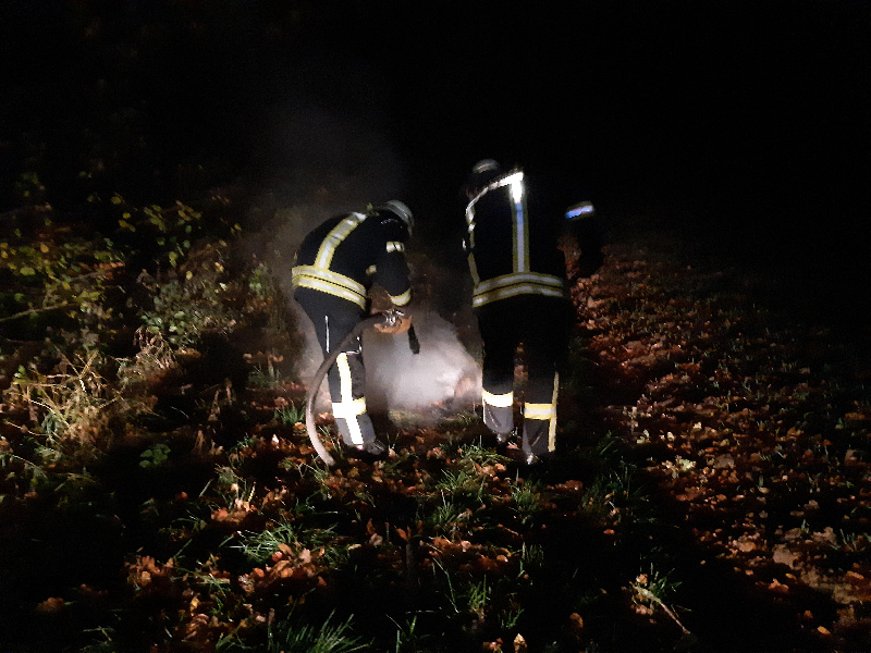 Alarmierung zu einem Kleinstbrand nahe Giershagen: Auf einen Waldweg brannten Reste von Holz und Pappe. Das Feuer wurde mit Schnellangriff gelöscht.
