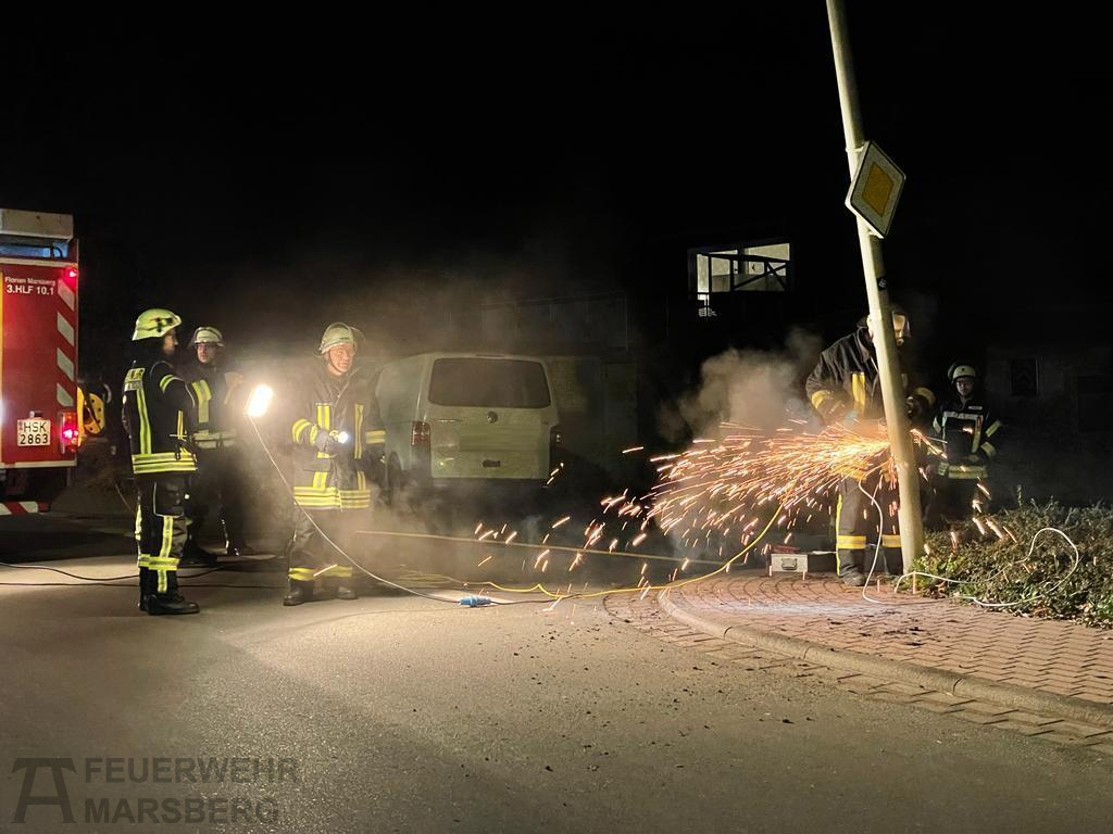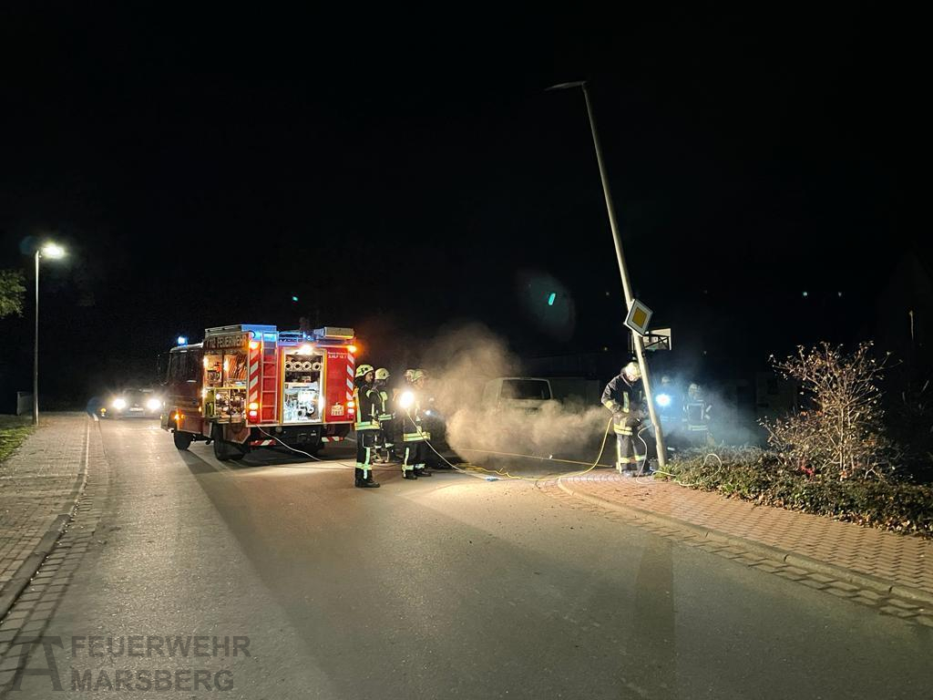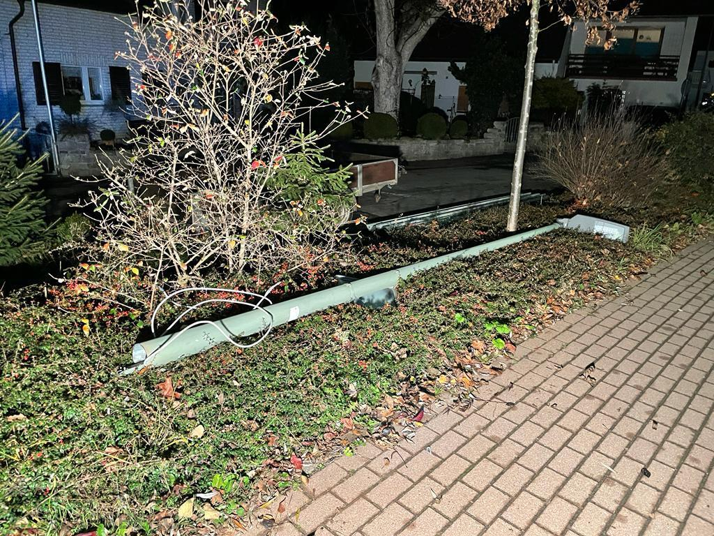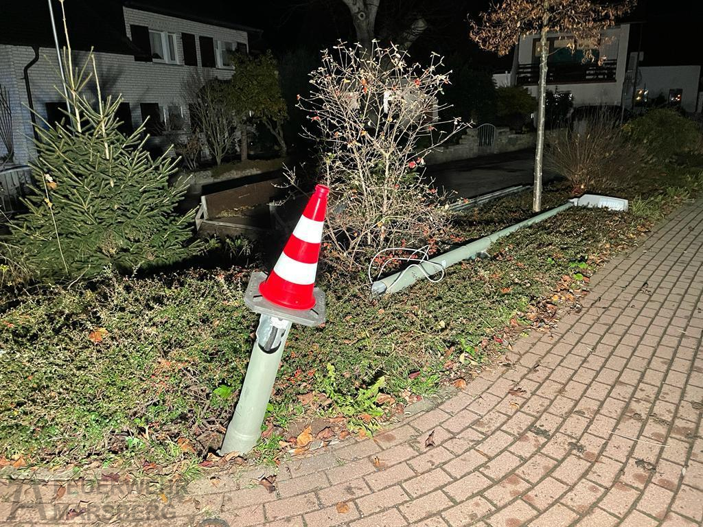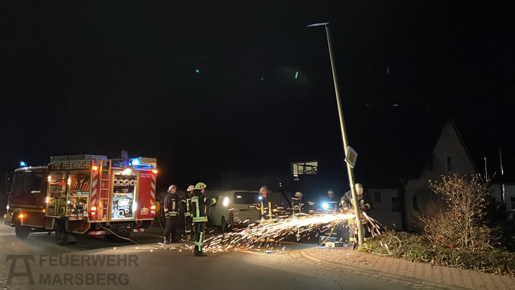 Westheim: Zu einer Amtshilfe für die Polizei wurde am Abend des 13.11.2021 die Löschgruppe Westheim alarmiert. Auf der Waldecker Straße war eine Straßenlaterne stark beschädigt und drohte auf die Straße zu fallen – in Folge eines Verkehrsunfalls. Die Einsatzkräfte rückten aus, um die Gefahr zu beseitigen: Nachdem durch Elektriker die Straßenlaterne stromlos geschaltet werden konnte, wurde diese durch Vornahme eines Trennschleifers entfernt und beiseite gelegt. Knapp eine Stunde waren die Wehrleute aus Westheim unter der Leitung von Jens Garbes vor Ort, ehe sie wieder einrücken konnten.