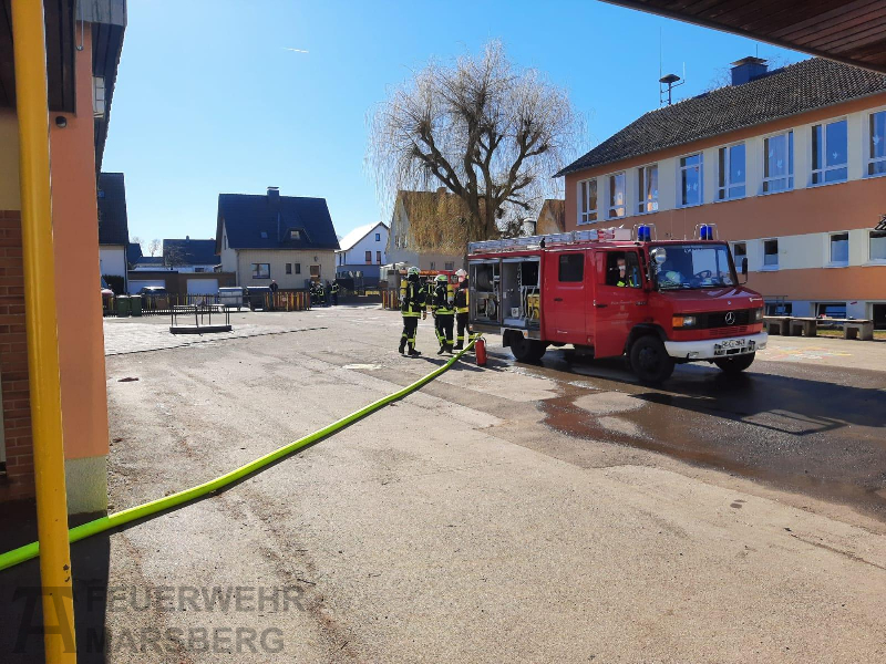 Giershagen: Zu einem Brandeinsatz in der Giershagener Grundschule wurden am frühen Nachmittag des 18.3.2022 die Feuerwehren aus Giershagen, Leitmar, Borntosten und Marsberg sowie Rettungsdienst und Polizei alarmiert: Im Keller des Schulgebäudes brannte ein Mülleimer, eine starke Rauchentwicklung war die Folge. Verletzt wurde bei dem Brand niemand. Die Polizei ermittelt wegen der Brandursache.