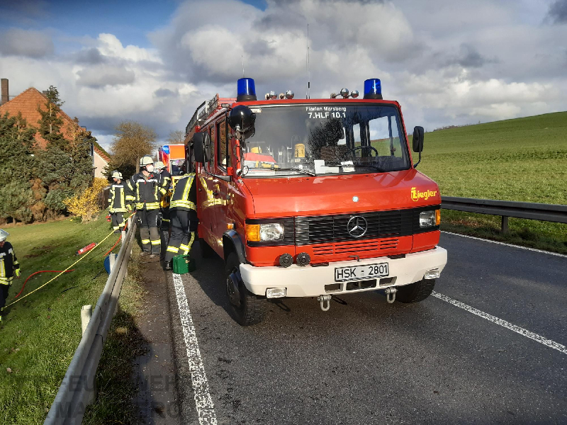 Ein Zeuge setzte den Notruf ab, mit dem Alarmstichwort „eingeklemmte Person“ wurden gegen 17.45 die Feuerwehren aus Bredelar, Beringhausen, Padberg und Marsberg zur Einsatzstelle alarmiert, ebenso Rettungsdienst und Polizei.