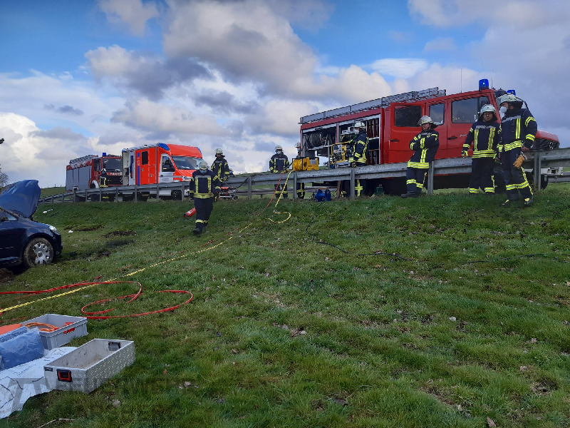 Nach einer knappen halben Stunde war die Frau aus ihrem PKW befreit und konnte vom Rettungsdienst ins Krankenhaus gebracht werden. Sie wurde nur leicht verletzt.