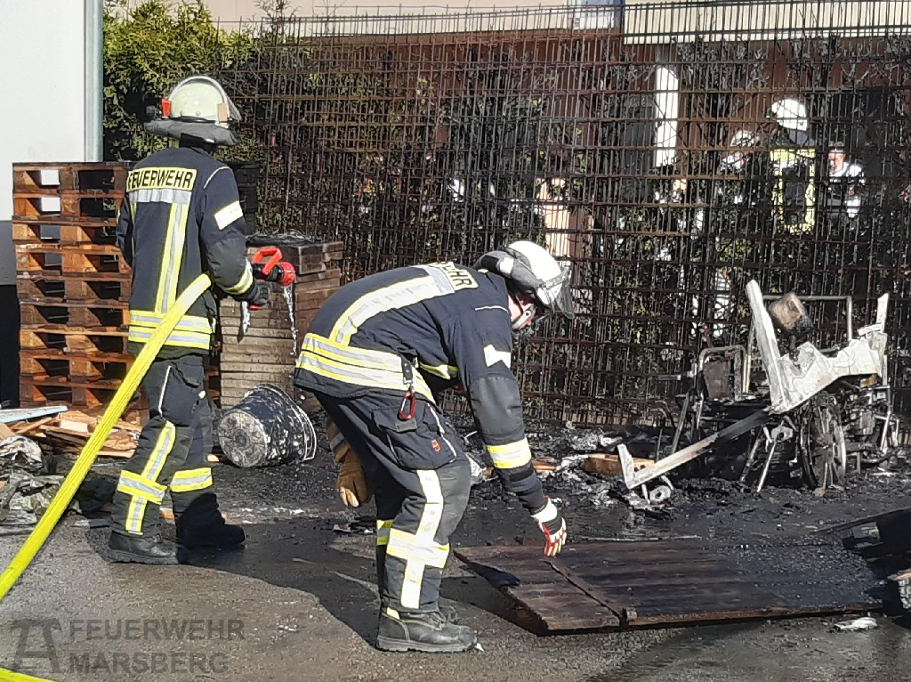Marsberg: Beim Brand eines elektrischen Rollstuhls konnte am späten Nachmittag des 28.6.2022 ein größerer Schaden verhindert werden: Ein Übergreifen des Feuers auf ein Wohngebäude konnte dank des schnellen Eingreifens der Feuerwehr erfolgreich abgewehrt werden.
