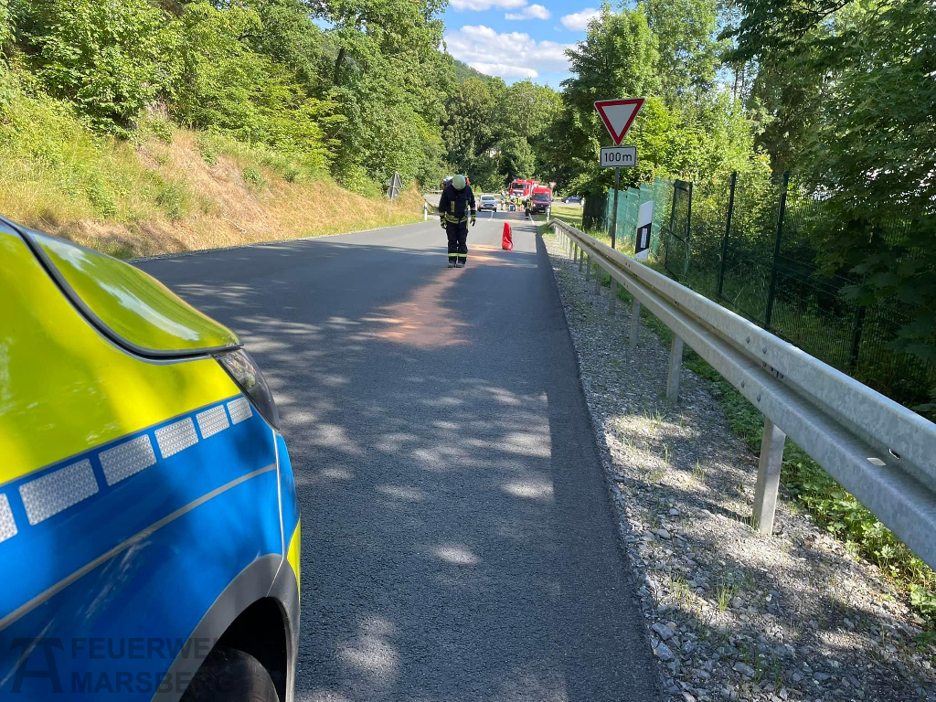 Hilfeleistung 0Ölspur: Ölspur; Straßenverunreinigung nach Verkehrsunfall
