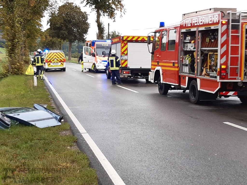 Westheim: Ein schwerer Verkehrsunfall ereignete sich am Nachmittag des 26.9.2022 auf der B7 zwischen Westheim und Scherfede: Aus noch ungeklärter Ursache prallte ein PKW auf gerade Strecke vor einem Baum. Dabei wurden die beiden Insassen schwer verletzt. Feuerwehr und Rettungsdienst waren im Einsatz. Zur Rettung der beiden Verletzten musste die Feuerwehr hydraulisches Rettungsgerät einsetzen.