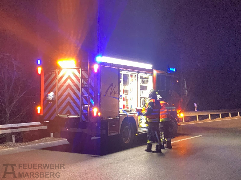 Es handelte sich um einem Alleinunfall mit einem PKW. Der Fahrer wurde nicht verletzt. Die Feuerwehr sicherte die unübersichtliche Unfallstelle, betreute den Fahrer und reinigte die Fahrbahn. Nach Übergabe der Einsatzstelle an die Polizei rückte die Feuerwehr wieder ein.