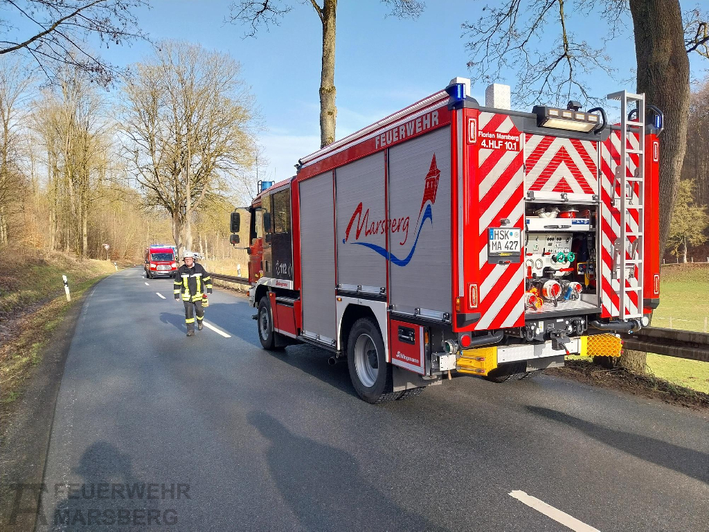 Giershagen: Am Vormittag des 26.2.2026 rückte die Löschgruppe Giershagen zu einer Tierrettung aus: Eine Katze saß in mehreren Metern Höhe in einem Baum, sie war schon am Vorabend dort bemerkt worden. Die Feuerwehr brachte eine Steckleiter in Stellung, das Aufstellen der Leiter genügte schon: Das Tier nutzte die aufgestellte Leiter, um darüber vom Baum zu klettern und in ein angrenzendes Waldstück zu verschwinden. Nach kurzer Zeit rückte die Feuerwehr wieder ein, der Besitzer der Katze konnte nicht ausfindig gemacht werden. Die Einsatzleitung lag bei Tim Schandelle.