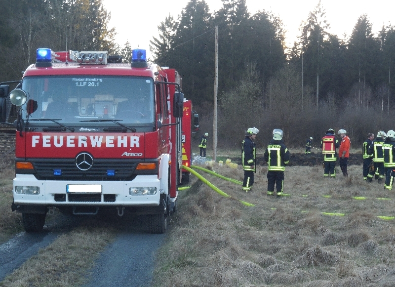 Obermarsberg: Zu einem Flächenbrand wurden am vergangenen Montag Abend die Feuerwehren aus Marsberg und Obermarsberg gerufen. Etwa 200m² vertrocknetes Gras und Gestrüpp standen im Obermarsberger Momecketal aus noch ungeklärter Ursache in Flammen. Die alarmierten Feuerwehren konnten das Feuer schnell löschen. Die Wasserversorgung wurde aus einen nahe gelegenen Gewässser sichergestellt. Nach einer Dreiviertelstunde war der Einsatz für die etwa 40 Einsatzkräfte bereits beendet.Dank des schnellen Löscherfolgs blieb der größte Teil der betroffenen Fläche und ein angrenzendes Waldstück vom Feuer verschont.