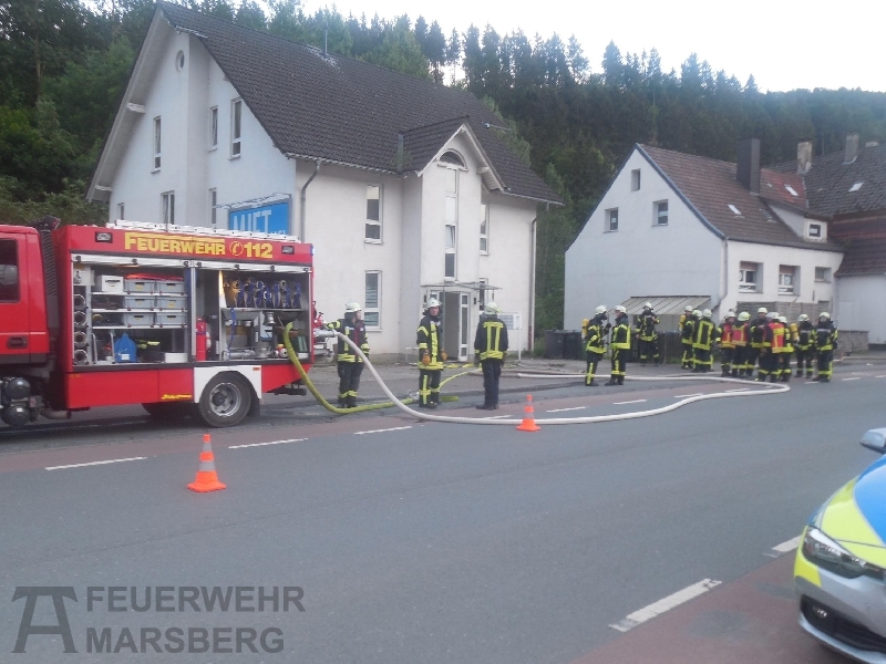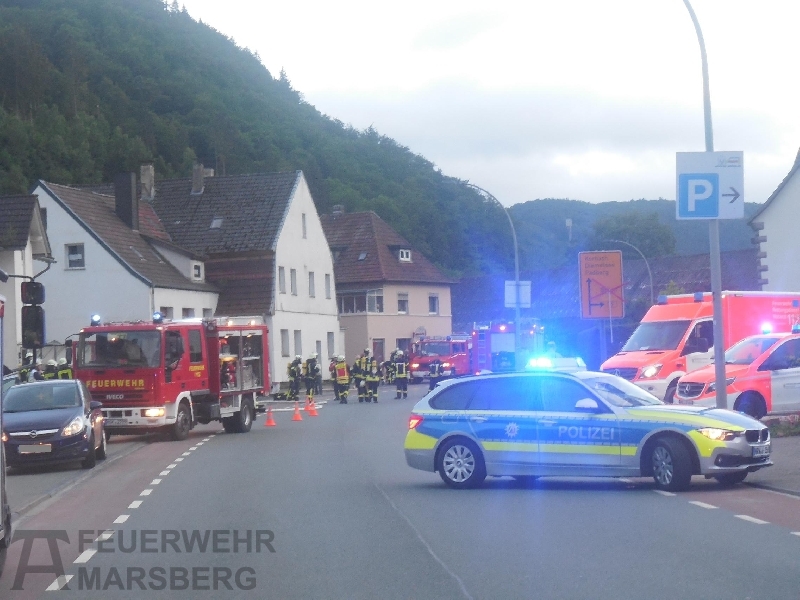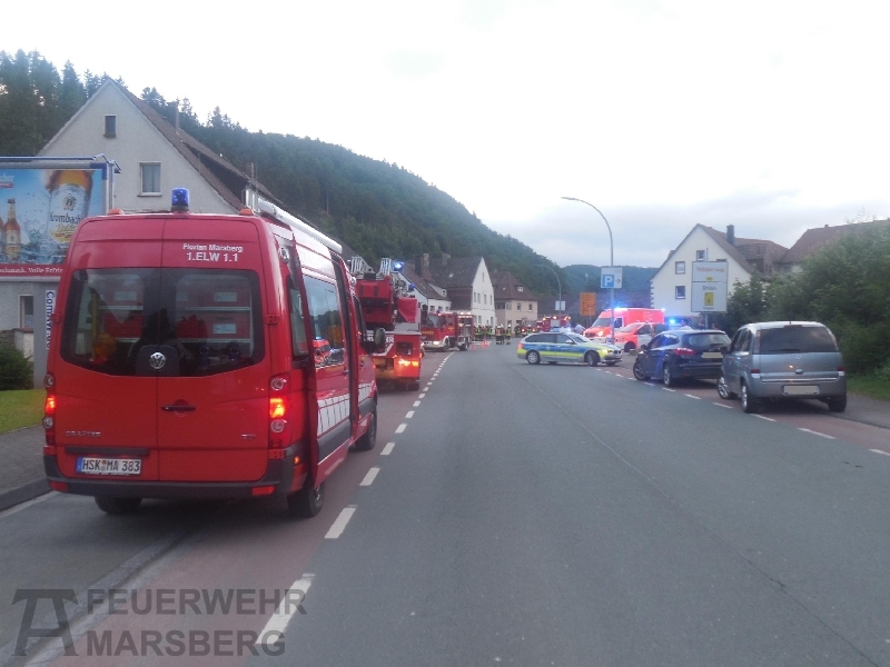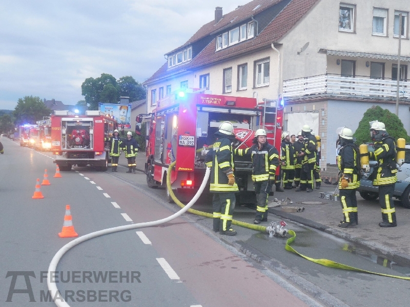 Der Brand ereignete sich in einer Wohnung im 3. Obergeschoss des Mehrfamilienhauses, in dem insgesamt 10 Personen wohnen. Da zunächst unklar war, ob sich noch Personen im Gebäude befinden, löste die Leitstelle Alarm gemäß dem Stichwort F4Y aus, Brand in Wohnhaus ab 3. OG mit Menschenleben in Gefahr. Dem Stichwort gemäß wurden die Löschgruppen aus Bredelar, Beringhausen, Padberg und Helminghausen sowie der Löschzug Marsberg zur Einsatzstelle geschickt, ebenso der Rettungsdienst mit Notarzt. Auch die Polizei rückte mit zwei Einsatzfahrzeugen an.