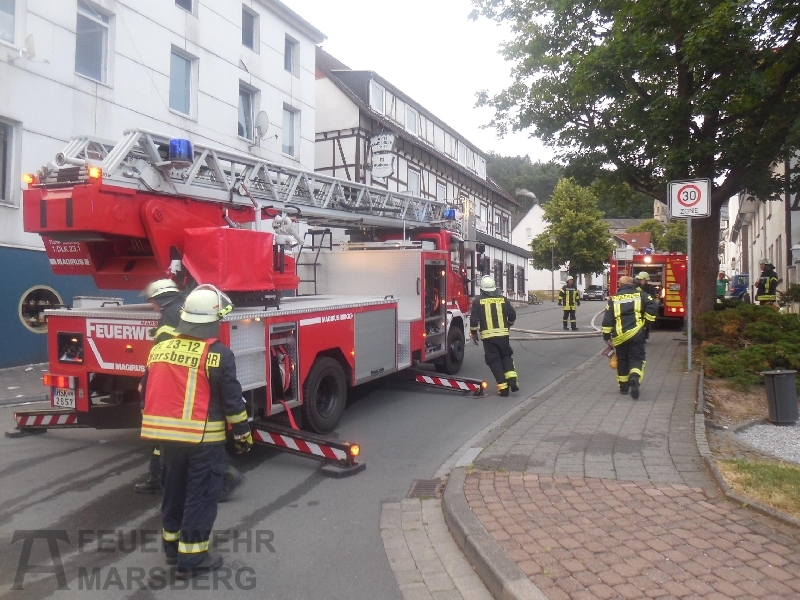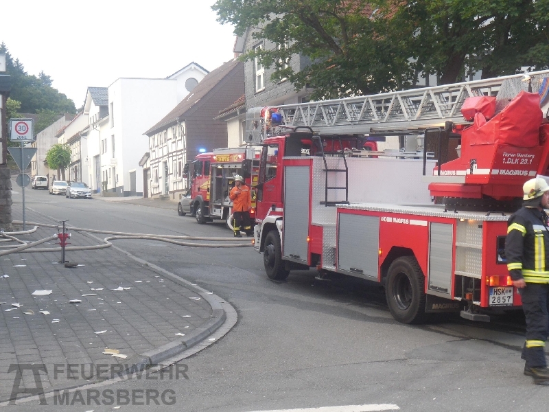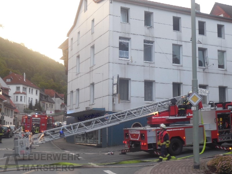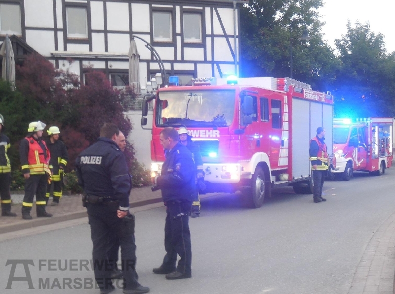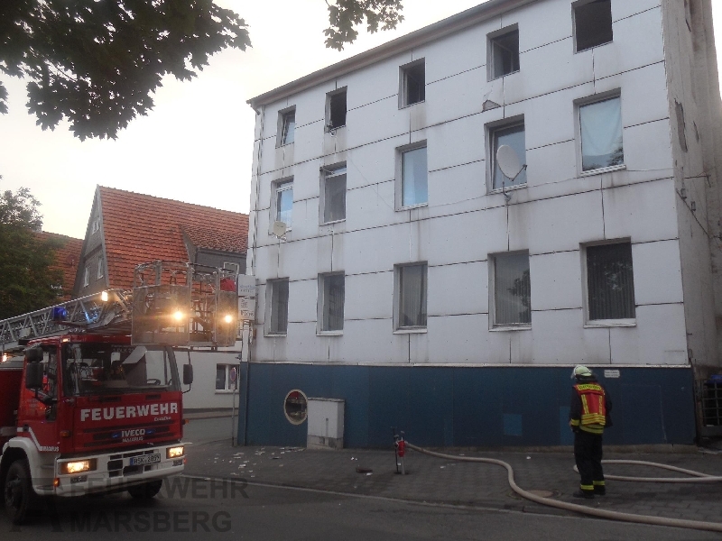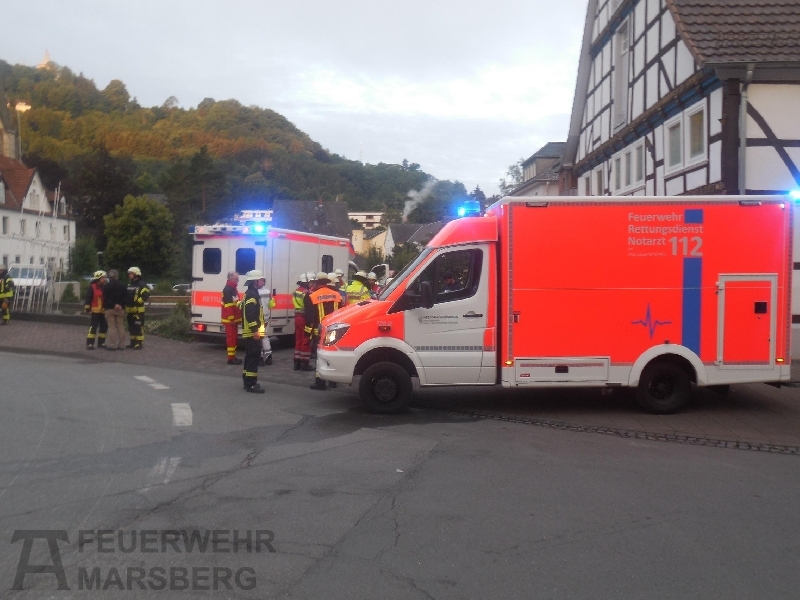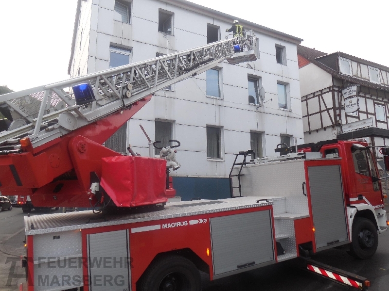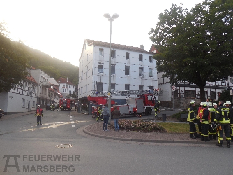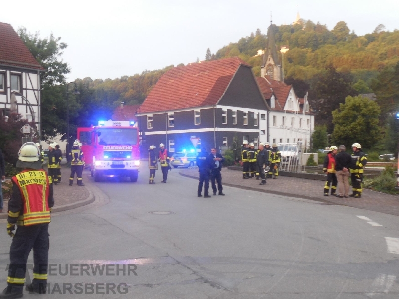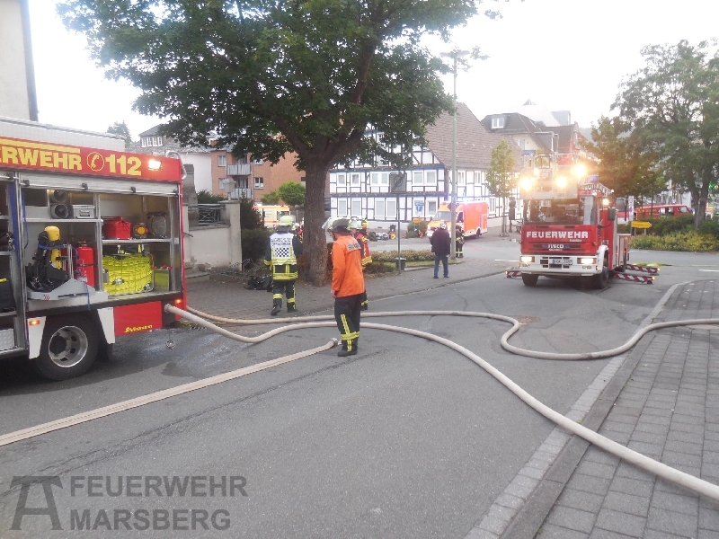 Gegen 4.45 Uhr in der Früh gab es Sirenenalarm für die Feuerwehren aus Marsberg und Obermarsberg sowie für den Rettungsdienst. Gemeldet wurde ein Kellerbrand mit Menschenleben in Gefahr. Dies bestätigte sich beim Eintreffen der ersten Feuerwehrleute an der Einsatzstelle. Mehrere Personen machten sich an den Fenstern ihrer Wohnungen bemerkbar und riefen um Hilfe. Aus mehreren Kellerfenstern quoll dichter Rauch hervor, ebenso aus mehreren Geschossfenstern. Auch das Treppenhaus des Hauses war bereits vollständig verraucht und nicht mehr begehbar. Infolge dessen wurde auch die Löschgruppe Erlinghausen alarmiert, ebenso wurden weitere Einheiten des Rettungsdienstes aus der näheren Umgebung sowie des Deutschen Roten Kreuzes zur Einsatzstelle gerufen.