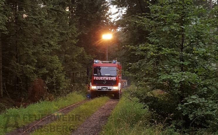 Die anrückenden Einsatzfahrzeuge wurden ab dem Rettungspunkt Glashüttenkreuzung von Forstmitarbeitern zur Einsatzstelle gelotst, dort wurde auch ein Bereitstellungsraum eingerichtet.