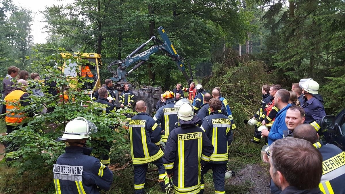 An der Einsatzstelle wurden Abschnitte gebildet. Während die Löschgruppe Essentho die Befreiung und Versorgung der eingeklemmten Person im PKW übernahm, versorgte und rettete der Löschzug Fürstenberg den verletzten Forstmaschinenfahrer aus seiner Kabine und suchte erfolgreich die unter Schock stehende Person.