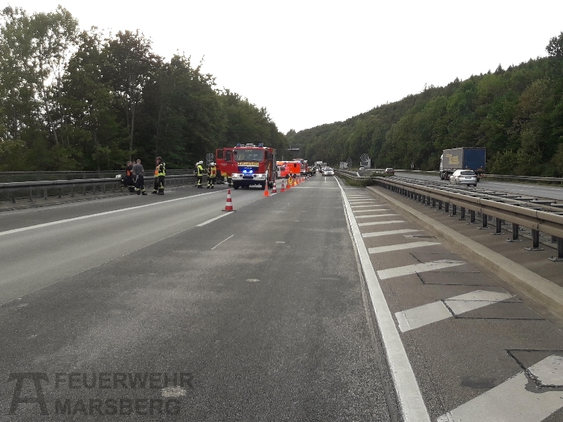 Meerhof: Zu einem Verkehrsunfall mit einer eingeklemmten Person und mehreren Verletzten wurden die Löschgruppen Meerhof, Oesdorf, Westheim sowie der Löschzug Marsberg alarmiert. Auf der Autobahn 44 war zwischen Lichtenau und Marsberg in Fahrtrichtung Kassel ein Pkw auf einen Lkw aufgefahren. Nach der ersten Meldung war eine Person eingeklemmt und weitere Personen verletzt.