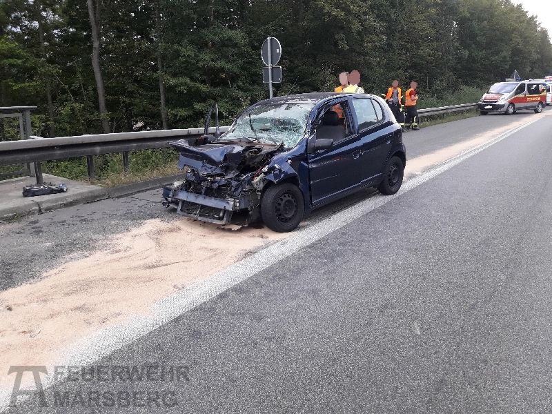 Die Feuerwehr sicherte die Unfallstelle ab und nahm auslaufende Betriebsstoffe auf.