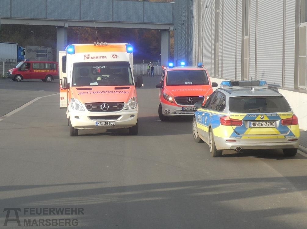 Am Nachmittag gegen 14.15 wurden die Rettungskräfte zu einem Industriebetrieb in Giershagen alarmiert: Ein Werksmitarbeiter hatte sich die Hand in einer Maschine eingeklemmt und konnte sich zunächst nicht befreien. Kollegen eilten ihm zur Hilfe und setzten den Notruf ab. Unter dem Stichwort „Eingeklemmte Person in Maschine“ wurden die Feuerwehren aus Giershagen, Leitmar und Marsberg, die First Responder Giershagen, der RTW aus Adorf und der Notarzt aus Marsberg sowie der Rettungshubschrauber „Christoph 7“ alarmiert.