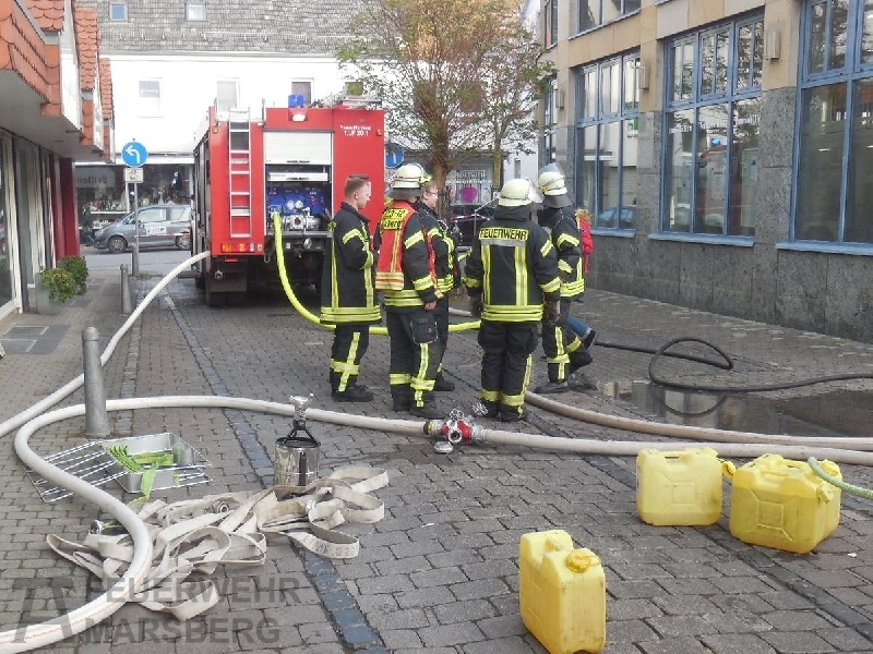 Die Einsatzleitung ließ sofort einem massiven Löschangriff mit Wasser und Schaum einleiten, um das Übergreifen zu verhindern und den Brand löschen zu können. Ebenso ließ sie das Alarmstichwort erhöhen, um weitere Einsatzkräfte aus Marsberg und Obermarsberg zur Einsatzstelle zu bekommen.