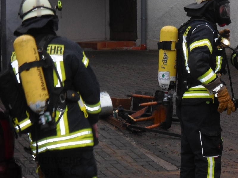 Den Brand konnten die Feuerwehrleute, ebenfalls unter Atemschutz, binnen kürzester Zeit löschen, Kleinlöschgerät und ein C-Rohr waren ausreichend: Das Feuer war glücklicherweise nur kleineren Umfangs und breitete sich auch nicht weiter aus.