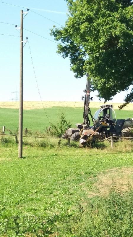 Beschädigte Stromleitung durch Harvester