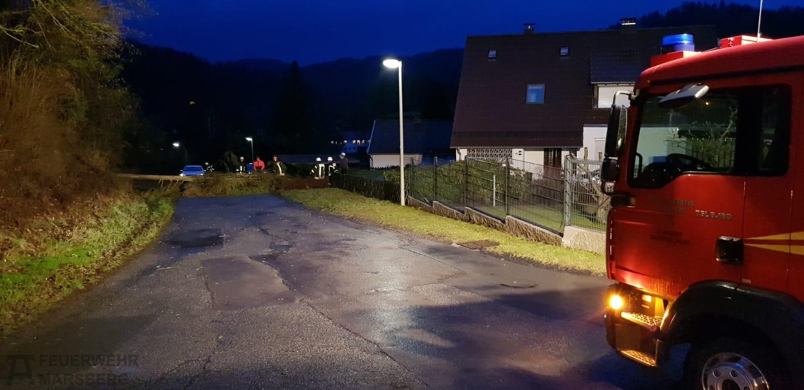 Am Abend des Knospensonnatgs allarmierte die Leitstelle HSK die Löschgruppe Obermarsberg zu einer umgestürzten Fichte im Glindegrund. An der Einsatzstelle zeigte sich, dass eine Fichte die Komplette Fahrbahn versperrt. Nachdem die Einsatzstelle ausreichend ausgeleuchtet wurde, wurde die Fichte mittels Motorkettensäge zersägt und die Fahrbahn gereinigt.