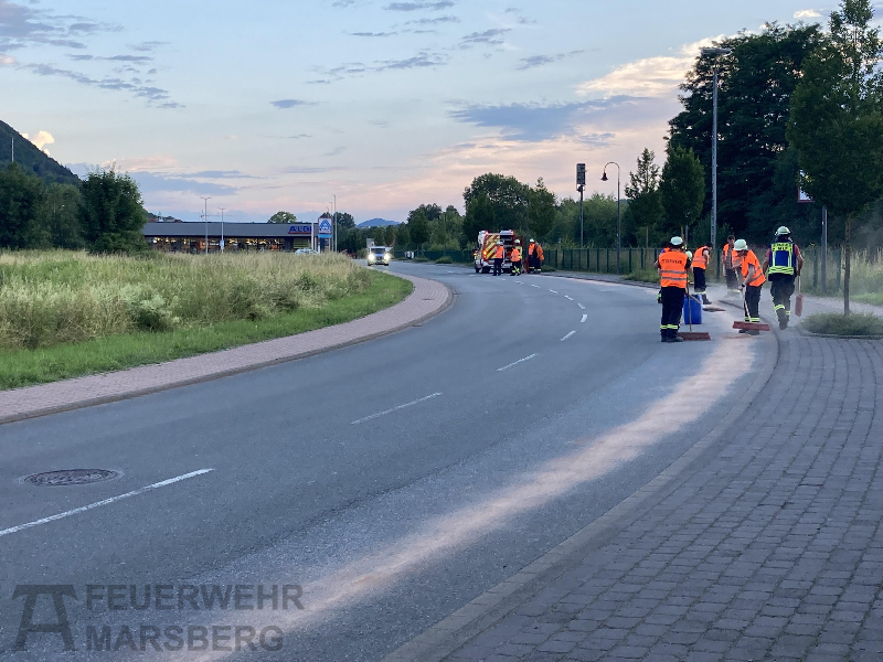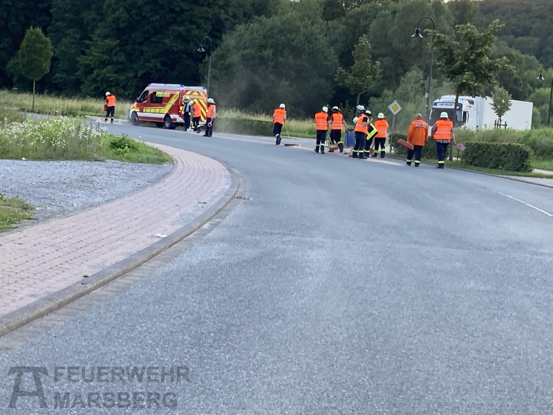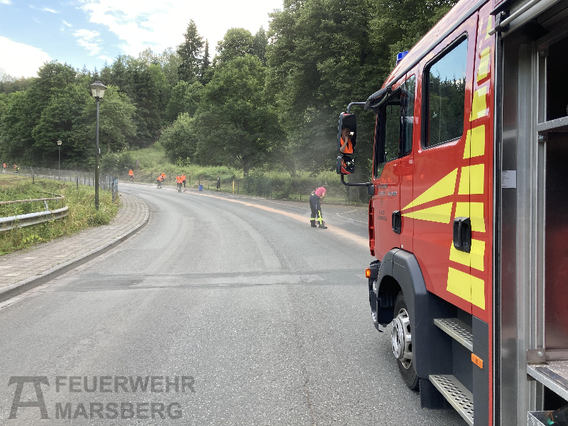 An dieser Stelle ein kleiner Appell der Feuerwehr: Bei solchen Einsätzen lassen sich leider Sperrungen und Verkehrsbehinderungen nicht vermeiden. Diese dienen der Sicherheit aller Beteiligten. Die Einsatzkräfte, die an diesem Tag die Ölspur beseitigt haben oder in naher Zukunft wieder eine Ölspur beseitigen werden und deshalb Straßen sperren müssen, sind dieselben, die in den letzten Tagen Keller und Straßen rund um Marsberg von Wassermassen beseitigt haben. Das sind diejenigen, die auch in Zukunft die Brände löschen, Schadensereignisse bekämpfen und den Bürgerinnen und Bürgern 24 Stunden, sieben Tage die Woche und an 365 Tagen im Jahr ehrenamtlich zur Seite stehen.