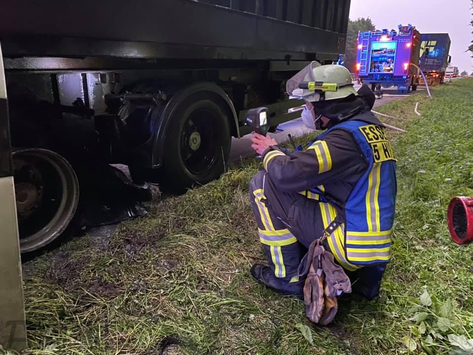 Durch die Feuerwehr wurde die Einsatzstelle gesichert, die LKW-Achse weiter gekühlt und mit einer Wärmebildkamera kontrolliert.
